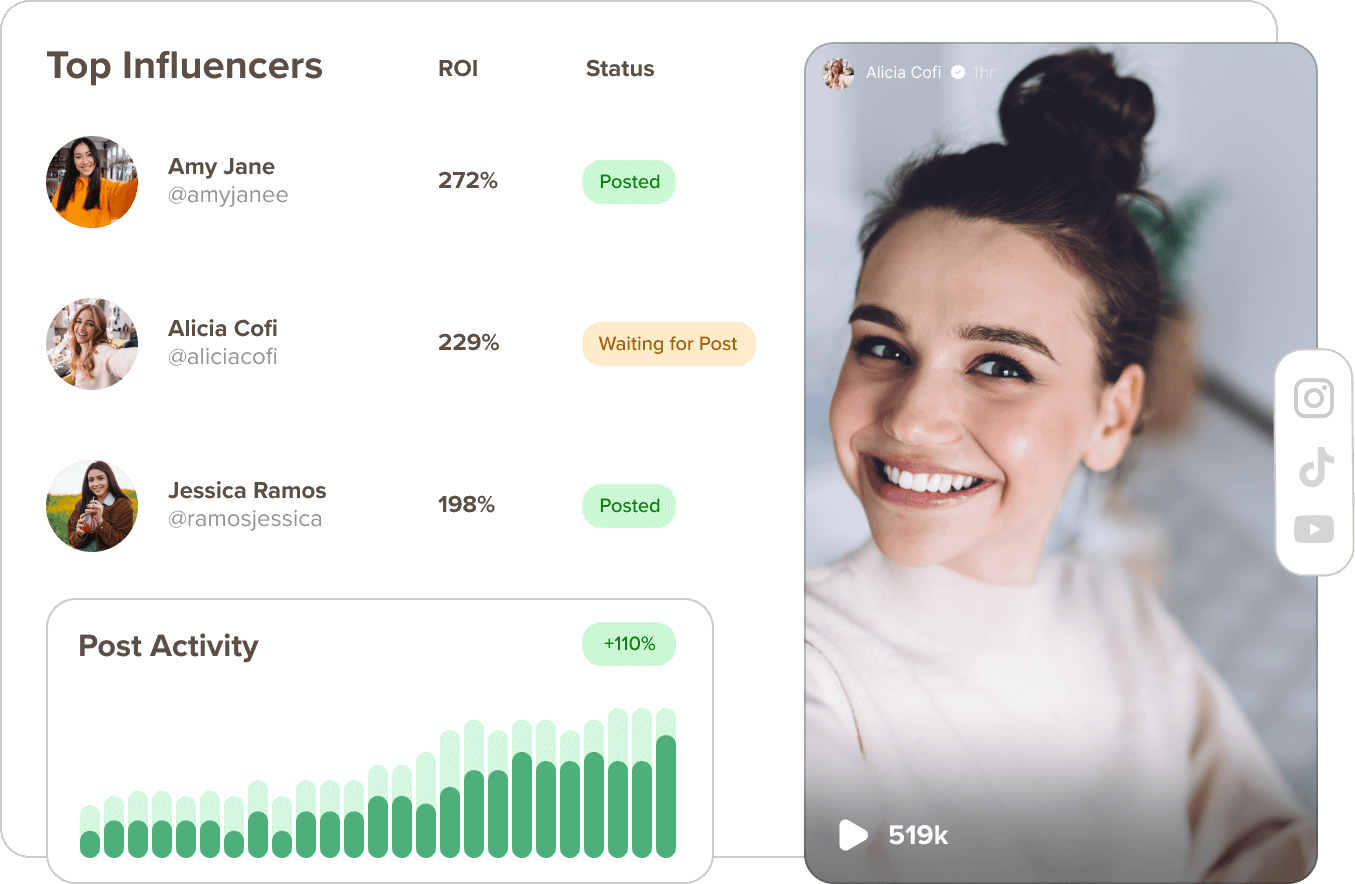 In short, we help you find influencers, collect media (even stories), send product, and effortlessly report on results across Instagram, TikTok, and YouTube, all in one place.
