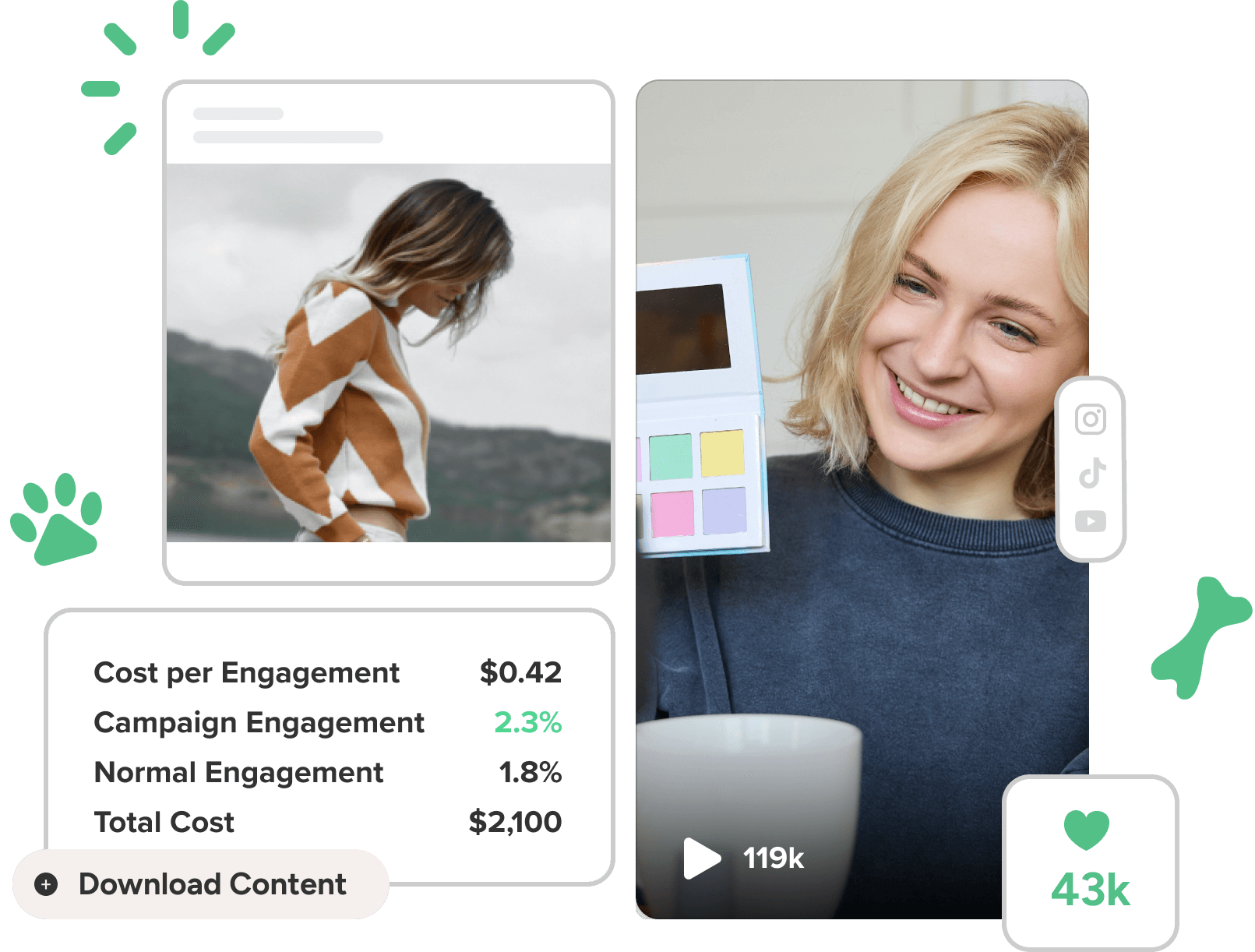 In short, we help you find influencers, collect media (even stories), send product, and effortlessly report on results across Instagram, TikTok, and YouTube, all in one place.